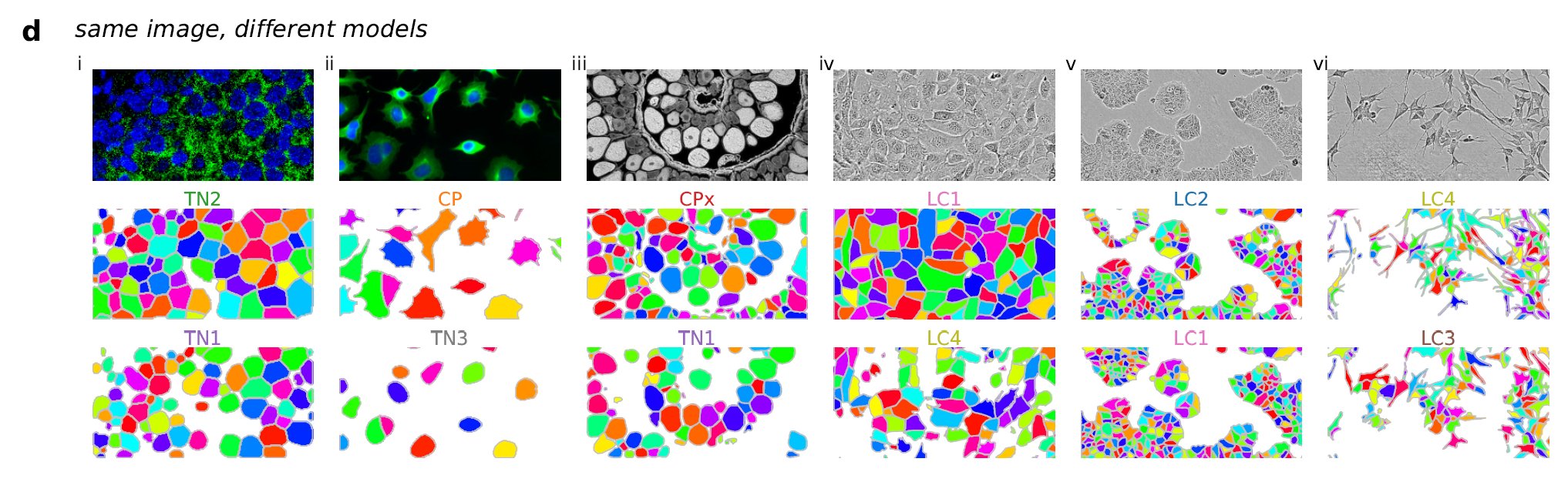 It’s impossible for a single model like Cellpose 1.0 to segment the same image in multiple ways. For this we had to build multiple models with different segmentation styles, i.e.: