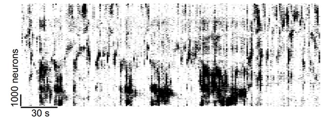 Neuron D: I think we’re going to be eaten. - We recorded about 10,000 neurons and sorted their activity using an algorithm so you can see next to each other groups of neurons that talk about the same things: