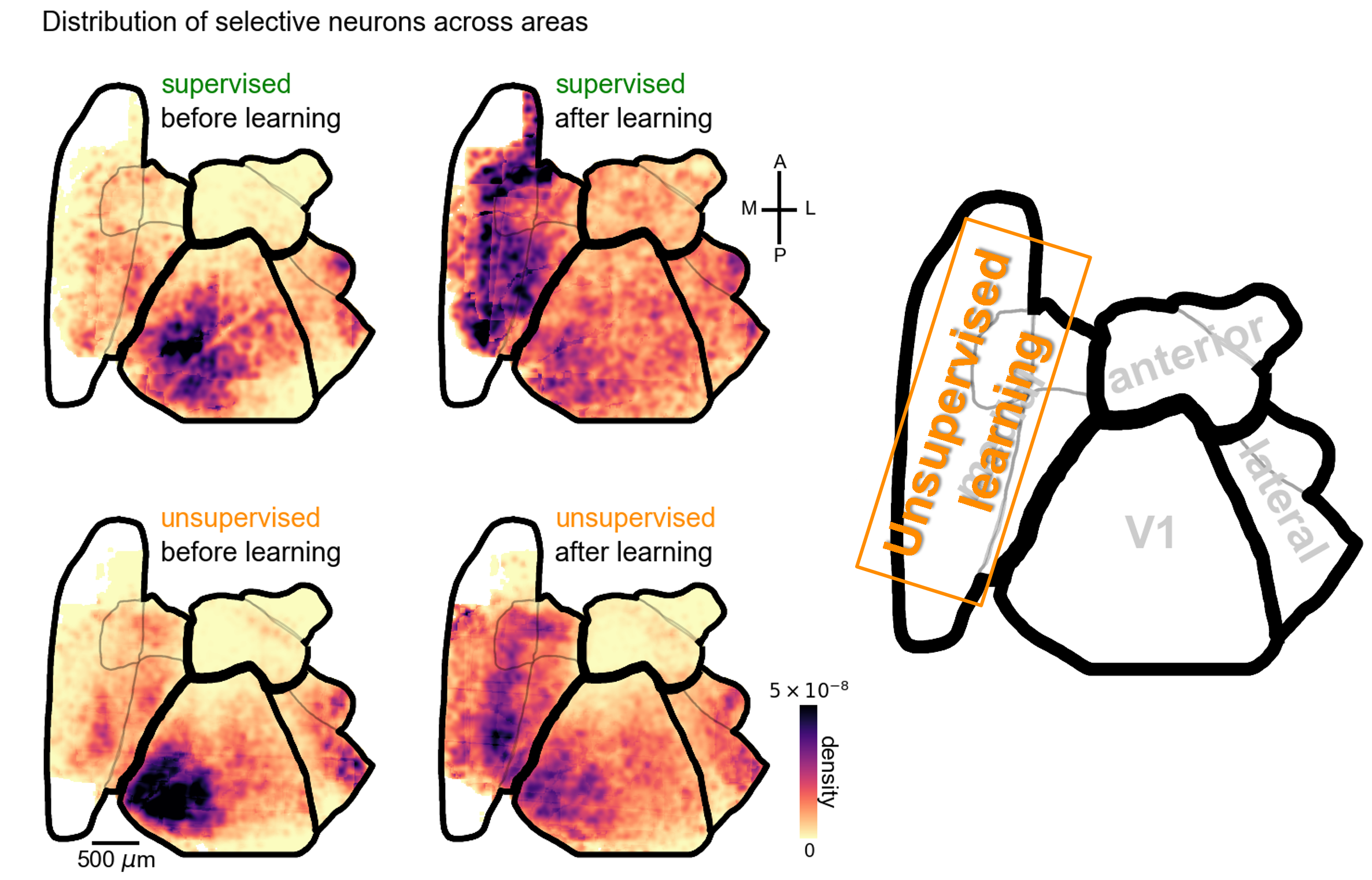 We found that the plasticity in medial visual areas was mediated by unsupervised learning.