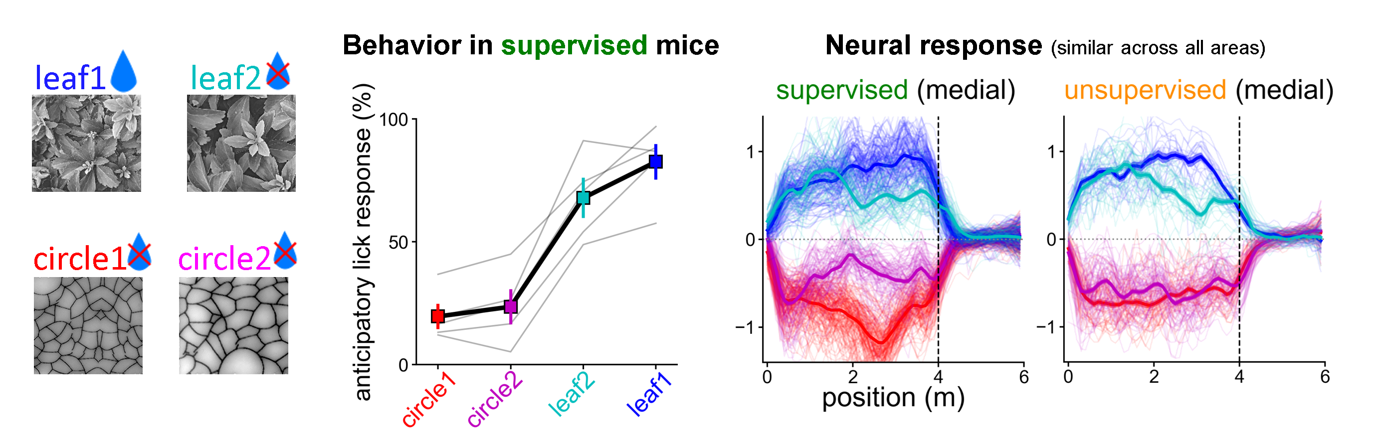 We developed a virtual reality (VR) task in which mice discriminated textures in order to get reward (supervised cohort) OR they just ran for FUN (unsupervised cohort).