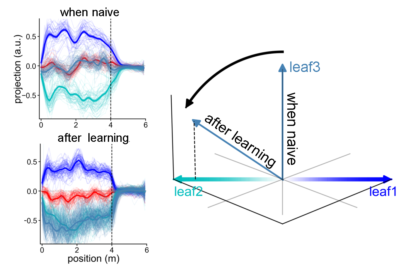 Mice learned to discriminate two very similar textures (leaf1 vs leaf2) by orthogonalizing them in the neural space